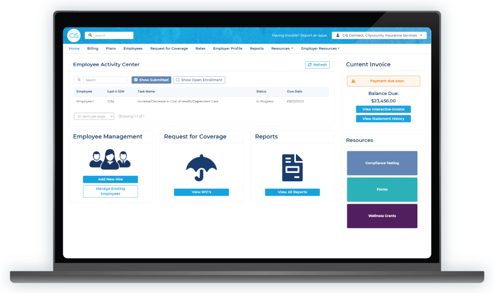 Moteur de règles tarifaires complexes, centre de facturation complet, inscription aux prestations, rapports sur les événements de la vie, gestion des entités et des employés, administration COBRA, portail de l'employeur, portail de l'employé, e-commerce avec ACH, authentification à double facteur.